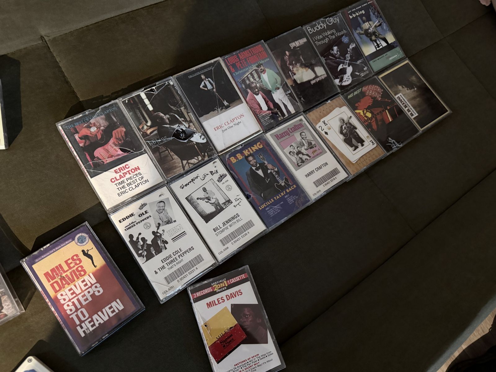 没错,是磁带。多数购于 1995 至 2000 年间。当然它们自身的年份更远早于此。想想看,初中高中时用家里普普通通的磁带机或者随身听一类反反复复听着它们,而在二十多年将近三十年后,它们不但能重见天日,还能被用在那么棒的机器里,一边觉得恍然隔世,一边也在替这些磁带开心。它们自己一定也很开心吧。