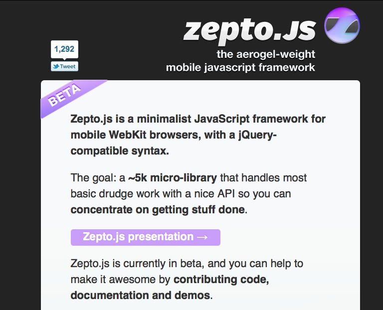 在移动化开发方面,作为一款更轻量的框架,Zepto是jQuery的一个不错的替代品。Zepto并没有被声明可以兼容旧浏览器,包括IE6等,同时,它在功能方面却几乎可以与jQuery媲美。如果你习惯于使用jQuery,那么你完全可以通过Zepto进行网站移动化或是混合型应用的开发。